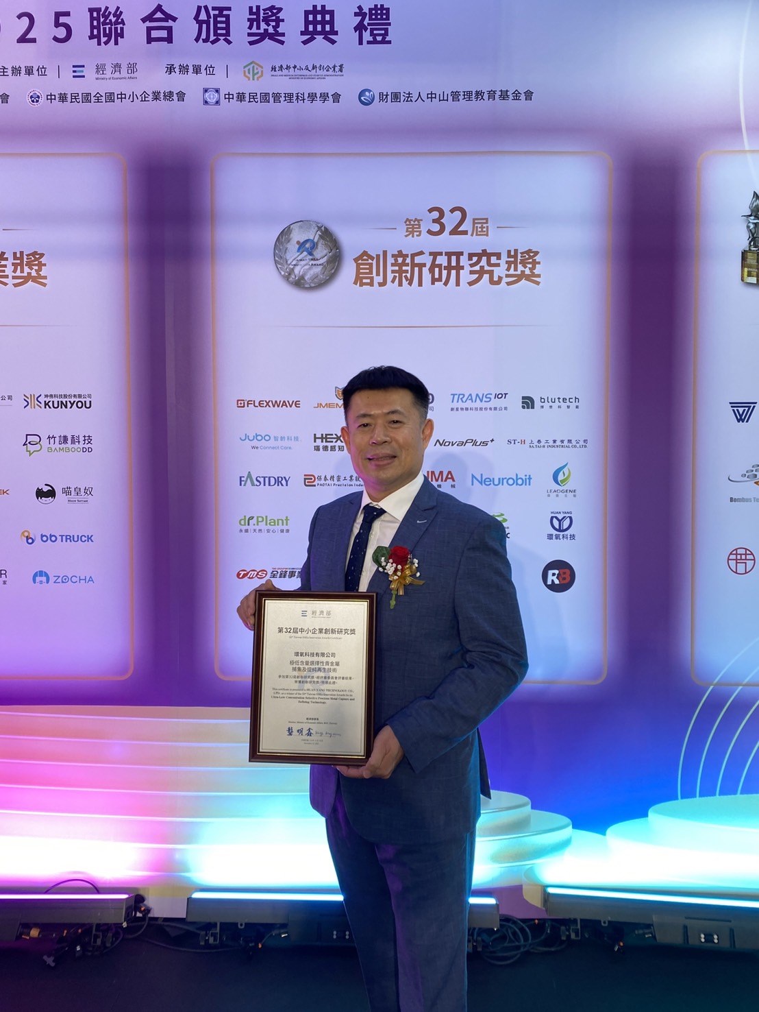 2025年11月19日獲頒-經濟部「中小企業創新研究獎」這項國家級創新里程碑!此獎項不僅象徵我們在技術研發與創新應用上的卓越實力獲得最高層級的肯定,更展現了環氧科技在創新道路上持續前進的扎實能量。